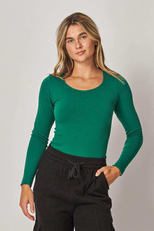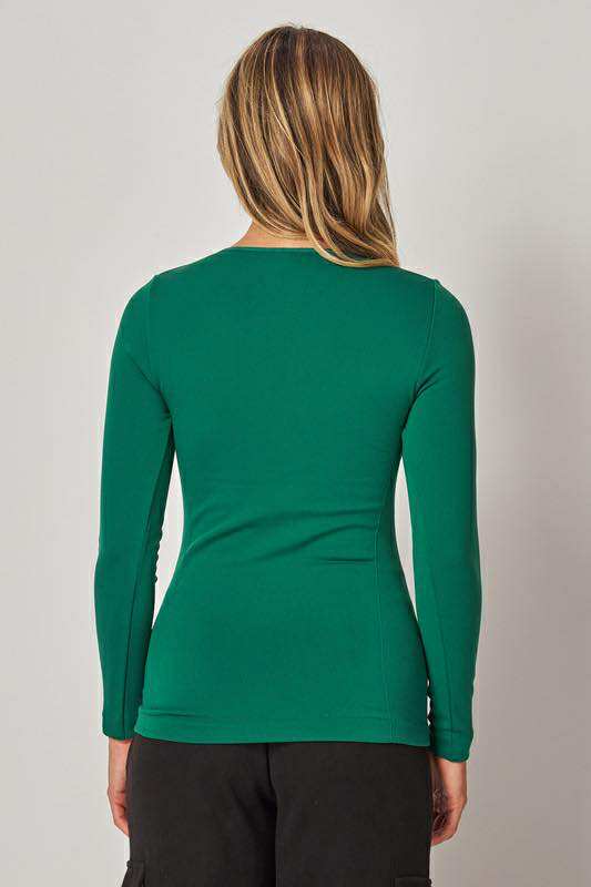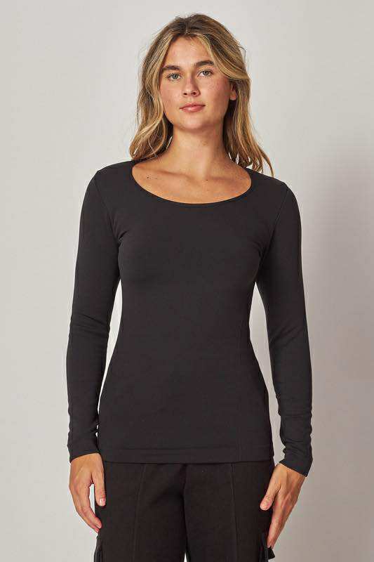 FLEECE LINED SEAMLESS ROUND NECK LONG SLEEVE TOP