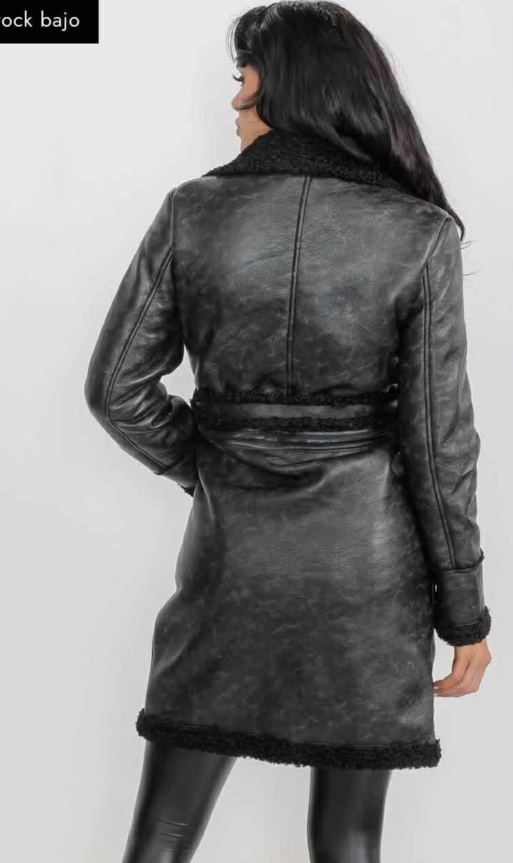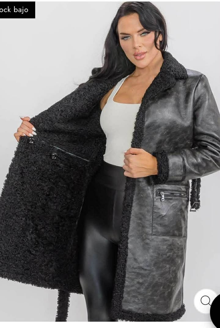 Envuelve el lujo y la calidez con este Abrigo Largo Cruzado (Wrap Coat) de diseño inspirado en la clásica chaqueta de aviador (shearling). Perfecto para quienes buscan un abrigo de invierno que sea tan elegante como abrigador, con una actitud audaz y sofisticada.