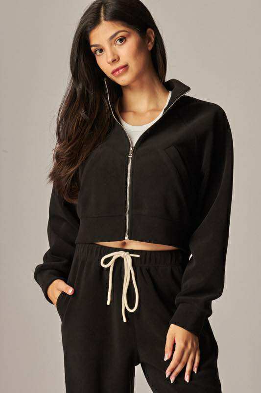 CHAQUETA DEPORTIVA DE CUELLO ALTO DE FORRO POLAR SUAVE Y ACOGEDOR.