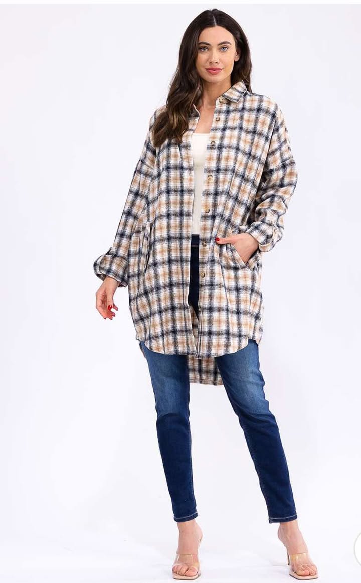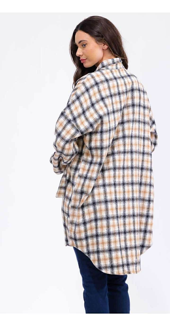 Elegancia Casual: Chaqueta Larga de Franela a Cuadros (Shacket)